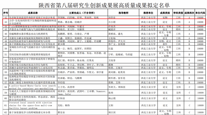 2022级博士研究生贾犇负责的“力学-生化协同作用下生物组织修复超材料设计方法研究”(指导教师:万小朋、黄河源)获得省级A类奖项(全校仅六项,全省57项)。本次获奖是学院学子首次参与陕西省研究生创新高质量成果展并取得的新突破!