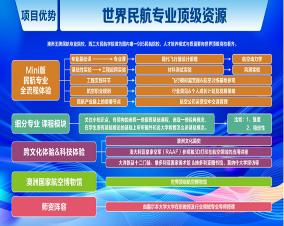 海外研学项目课程教学方面经过多次迭代渐进优化,课堂内容逐步精选并且形式多样性上已经有了较为固定的优选模式。在3-5月与墨尔本大学STEM团队反复沟通过程中,课堂教学由于某些敏感原因原定授课计划相对困难,由此,双方团队尝试从前沿课程为主第一课堂教学设计逐步转向契合民航专业实操性强的第二课堂特色规划,利用澳洲民航顶级资源,前往澳洲名校体验mini版民航专业全流程实践环节人才培养。