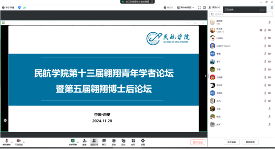 第十三届翱翔青年学者论坛暨第五届翱翔博士后论坛成功举办。来自西安交通大学、浙江大学、四川大学、中北大学、特鲁瓦技术大学等海内外高校的青年学者围绕民航领域前沿科技及热点问题进行了交流研讨,推动学科交叉与创新。