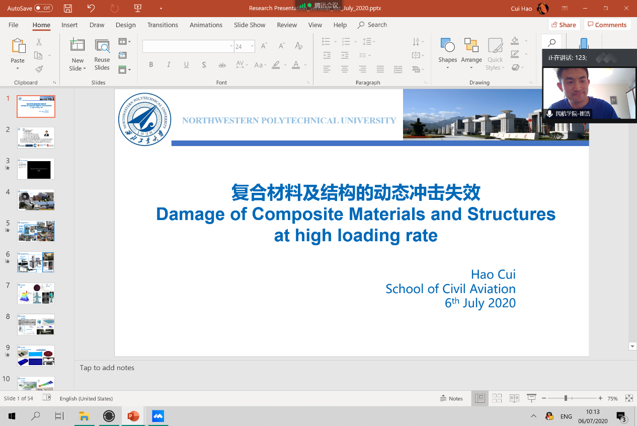 几个特色学科团队围绕科研热点问题为同学们打开全新的视野,马存宝教授做“飞机通信导航与雷达相关技术进展”主题报告,姜洪开教授做“飞行器大数据分析与智能运维”主题报告,刘贞报教授做“无人机智能飞行控制技术”主题报告,远在英国的翱翔青年学者崔浩教授也为学员们跨时空带来“航空复合材料结构的力学行为研究”主题报告,内容新颖,讲解精彩。