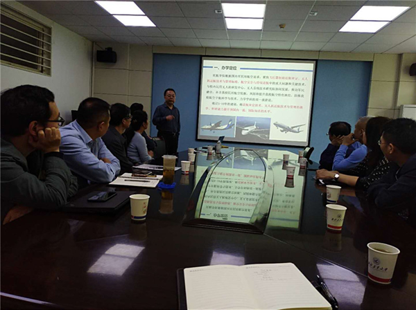 、民航研究院规划介绍》主题报告,重点从学院办学定位、组织机构、人才培养、科学研究、学科发展、师资队伍、培训业务、近期开展工作等方面进行了详细地解读。谢发勤传达学习了学校基层党委、党总支宣传思想工作专项会议精神,强调了加强网站、微信等安全管理。全体老师对学院人才培养、实验室建设、教学研究等进行了研讨交流。