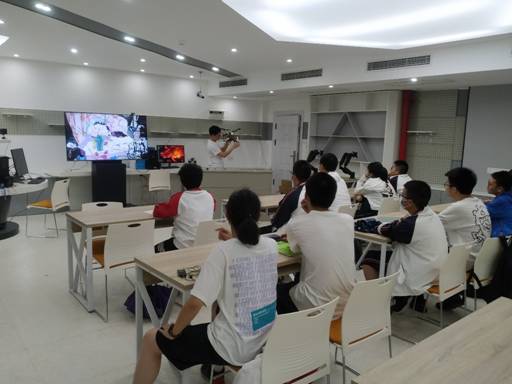 青年教师戴维、全勇、谢梦雅等为华中师范大学第一附属中学高中学生进行无人机模拟飞行授课,带领学生进行无人机模拟飞行,有力激发学生航空报国的热情,使学生进一步了解西工大、热爱西工大。