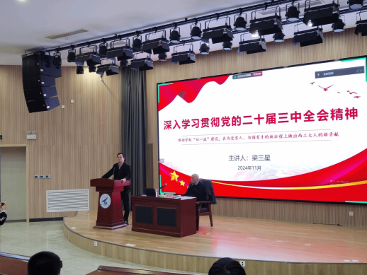 梁三星教授的专题党课由中共二十届三中全会公报主要内容、中共二十届三中全会《决定》的主要内容、贯彻全会精神推动西工大“双一流”建设三部分组成,内容丰富、话语生动,既有政策理论高度、又紧密结合学校发展实际,对于广大师生深入学习贯彻党的二十届三中全会精神和学校第十四次党代会精神具有重要指导意义。