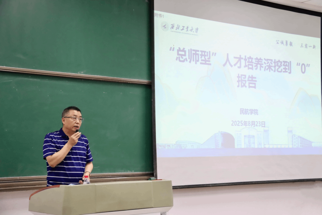 闫伟书记在给新生的讲课中介绍了学院师资队伍,并深入解读了西工大“愿意去、留得住、干得好”的就业现象和“总师育人文化”的内涵。他强调,西工大作为工信部重点高校,始终与国家战略同频共振。他还从家长角度表达了对新生家庭的理解与支持。