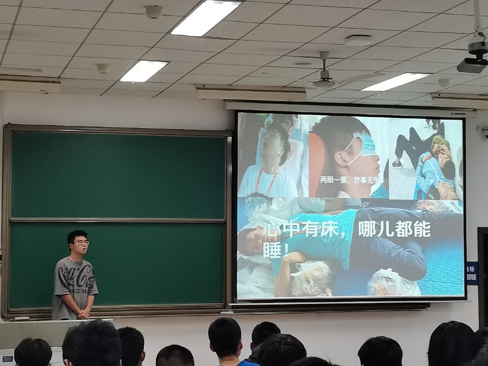 两位同学分享结束后,袁源对转大类加入本年级的12位新同学表示热烈欢迎,希望他们尽快主动融入新的集体,适应新的学习生活节奏和管理要求。他强调了学习的重要性,重申了学校关于学分修读、学业警告等的规定。他希望同学们正确看待综合测评和奖学金评定中的得失,多找自身的差距,同时积极提出对有关规则的未来修改建议。他还对严格执行请销假制度、零报告和健康日报,加强疫情防控和假期人员管理等提出了要求。谈到推荐入党积极分子、考察发展对象等工作时,他强调要坚持政治标准优先,重点考察日常表现、集体主义观念、奉献精神和遵规守纪等情况,还对“教育与宗教相分离”和“共产党员、共青团员不允许有双重信仰”等进行了解释。最后,他对学校和学院对2018级本科生执行的推免工作程序和方法进行了讲解。