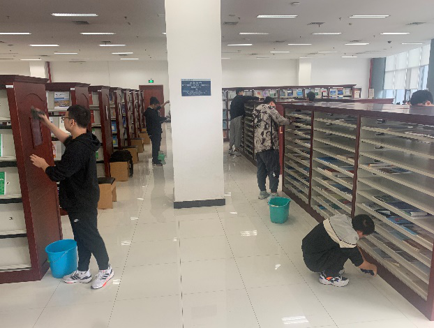 深秋时节,长安校区沉浸在一年中的最美秋色里,在朦朦细雨中,CA011903班同学在班委会和团支部的组织下,踩着轻轻的脚步在图书馆期刊室开始了劳动。同学们按照前期的分组:一部分同学细心地对期刊室的刊物进行了系统的分拣归类,另一部分同学则耐心地对期刊室的书架进行了擦拭与整理,在期刊室谢老师的指导下,在密切协作中有条不紊地完成了劳动任务。经过一下午的辛勤劳动,看着按照要求分拣归类后的刊物,摸着洁净如新的书架,同学们都在不经意间露出了发自内心的微笑。