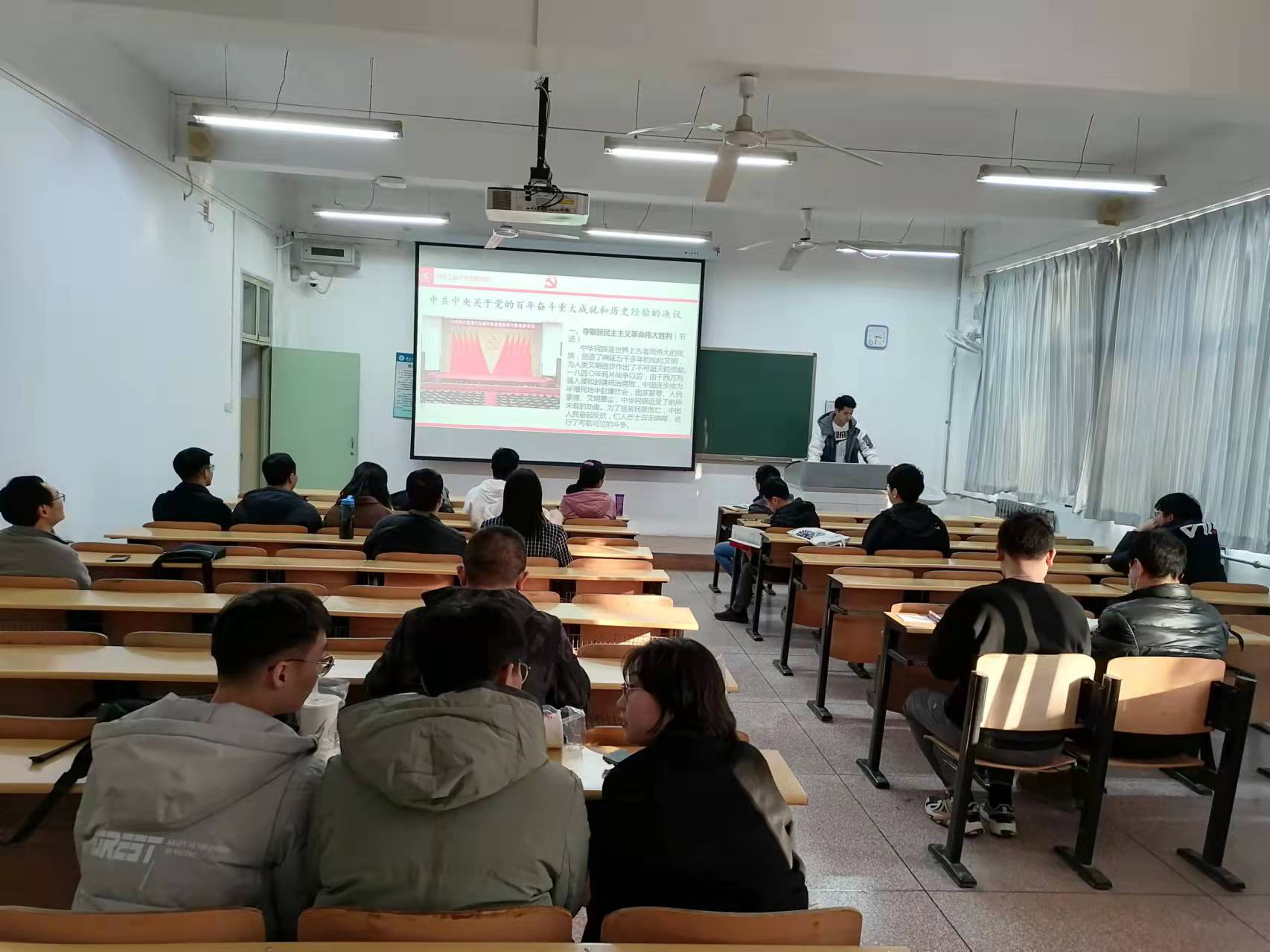 博士生党支部在友谊校区西馆XA203讲授“重温峥嵘岁月,坚定信仰担当”主题示范党课,主题为生于伟大革命实践的“渭北革命精神”。学院党总支副书记袁源,党总支委员、院长助理陈杰,辅导员陈杨和学院其他学生支部支委代表到场观摩。