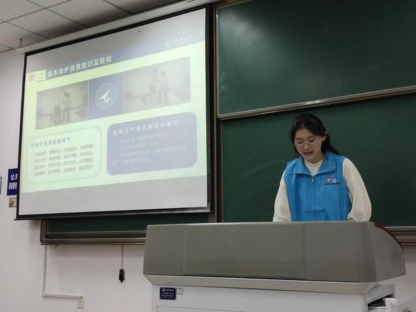 日常的志愿者工作。首先,张欣怡从志愿者面对不同场景时需要掌握的技能,该保持怎样的心理,应该做出什么应对等不同方面做出了清晰且深入的讲解。其次,张欣怡向大一新生讲解了心肺复苏、止血方法等重要的急救知识和技巧,提高大家的自保能力和救护能力。然后,根据踩踏和火灾两个场景的特殊性提出了针对性的方法和措施,包括保持警惕、冷静和自我保护的技巧,不仅解决了新生们在这两种情境下的应对策略和保护方法,同时也对其它危险的突发事件有重要的借鉴意义。最后,张欣怡重点介绍了学生志愿服务工作可能出现的工作场景,其中有协助类志愿,引导类支援和实践类志愿,说明了在面对不同的志愿场景时的工作方式和方法,帮助新生们更快的融入到志愿服务工作中。