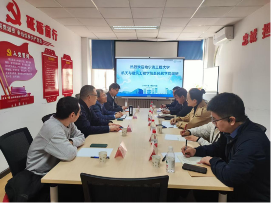 闫伟代表学院,对于哈工程航建学院一行的到访表示热烈欢迎,并简要介绍了学院历史沿革、师资队伍、学科建设等情况。于欣欣也重点介绍了航建学院在学科建设、人才培养等方面的特色和成果。张晓化重点围绕人才培养,介绍了学院专业建设情况、专业建设的基本思路与经验等。